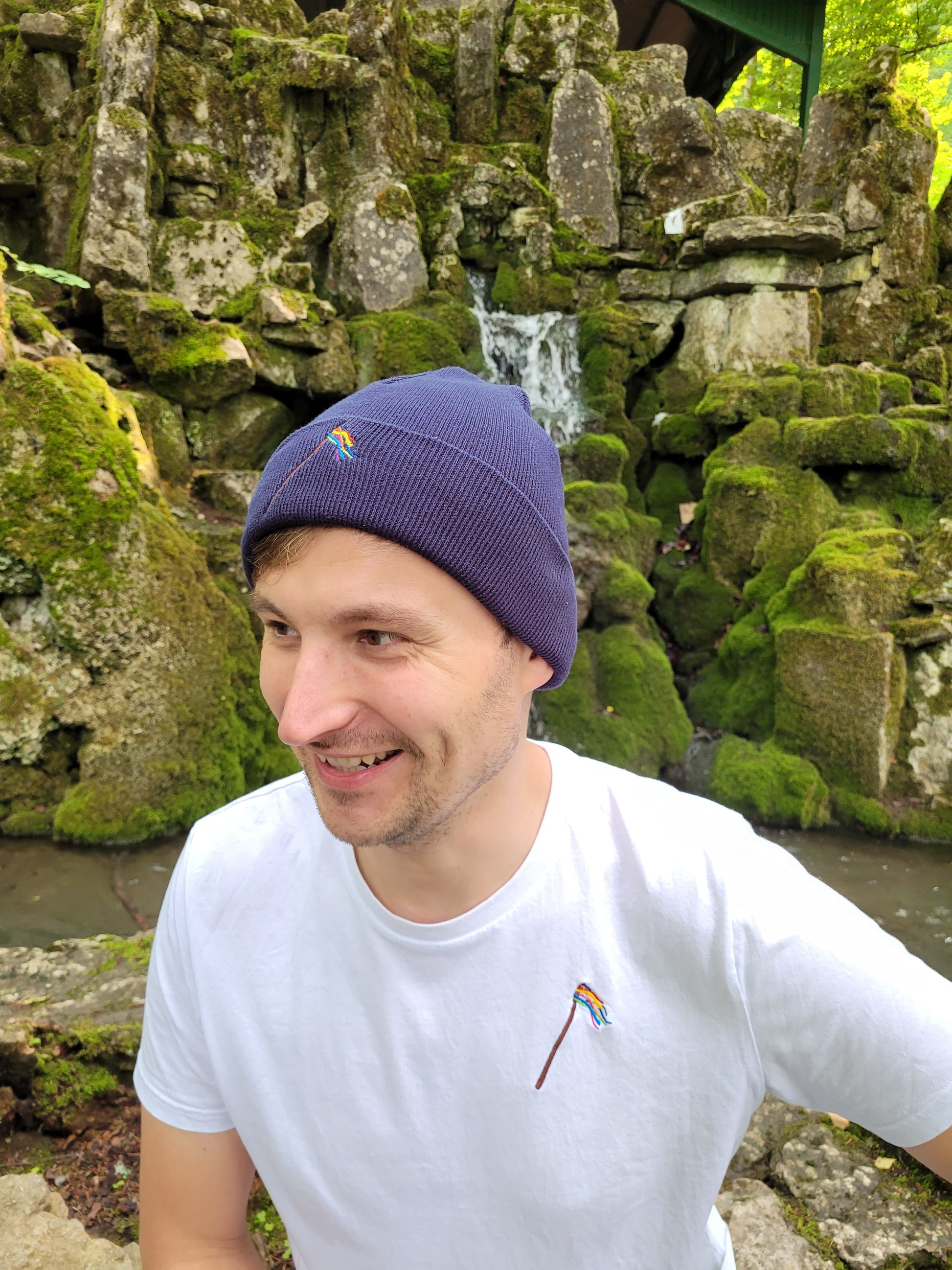 Es handelt sich um eine Rib-Beanie aus 80 % gekämmter, ringgesponnener Bio-Baumwolle und 20 % recyceltem Polyester.