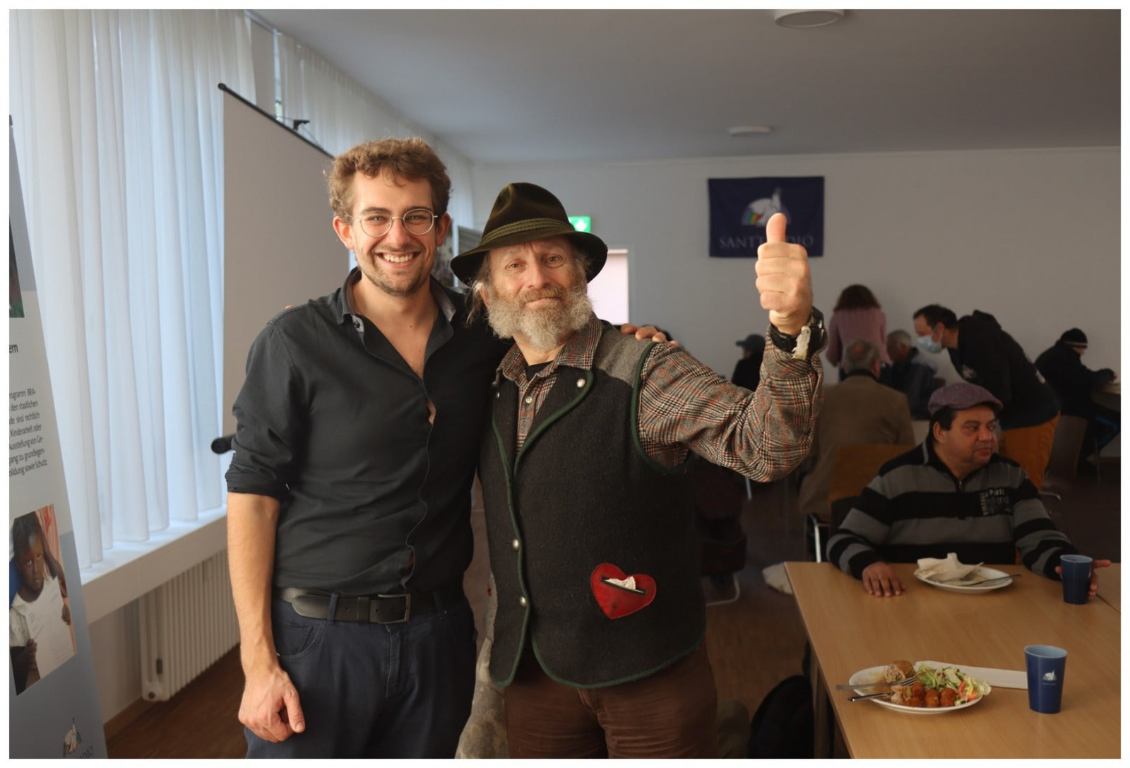 Besonders beeindruckend finde ich, wie bunt unsere Helfergruppe ist: Bis zu 20 junge Erwachsene unterstützen jeden Sonntag beim Empfang, beim Essenausgeben und beim Bedienen. Viele meiner Mithelferinnen und Mithelfer sind selbst als Geflüchtete nach Deutschland gekommen und haben über unsere kostenlosen Deutschkurse den Weg zu Sant’Egidio gefunden.