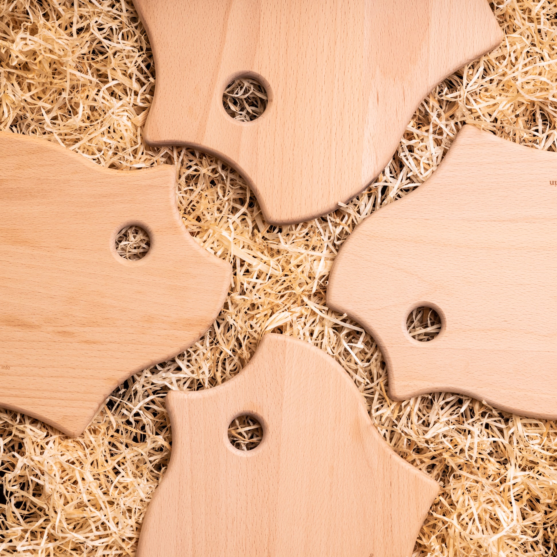 - Pflegehinweis: Eine Behandlung der Oberfläche mit Öl (z.B. Leinöl) macht das Frühstücksbrettchen widerstandsfähiger gegen Schmutz und Feuchtigkeit